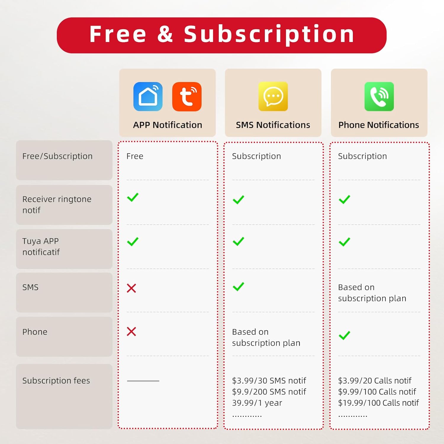 No, there is no monthly fee for receiving notifications through the Tuya Smart app.However, if you require SMS or phone call notifications, additional subscriptions may be necessary.