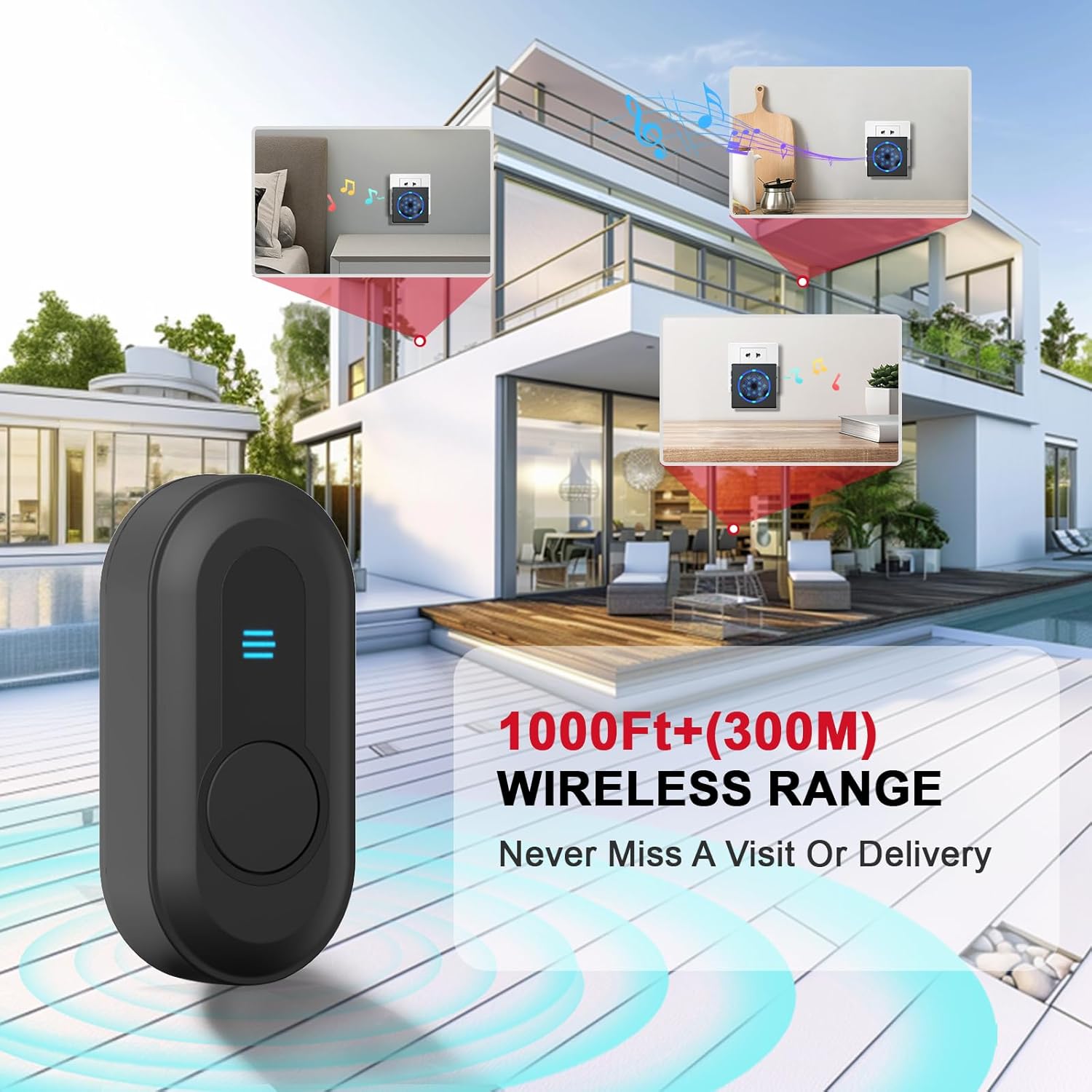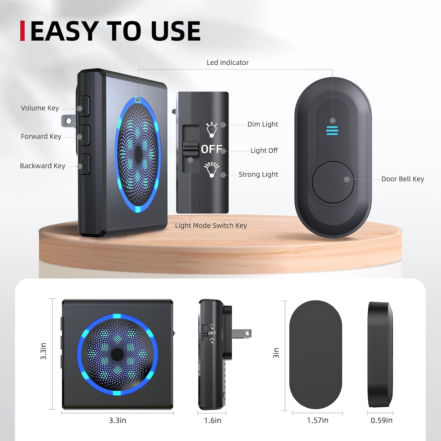 Daytech Hearing Impaired strobe Light & 55 Melodies, 1000ft Long Range Wireless Adjustable Volume, IPX5 Waterproof Call Buttons